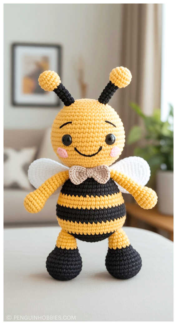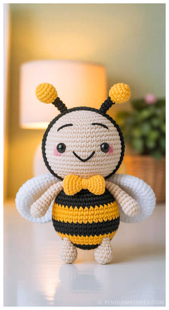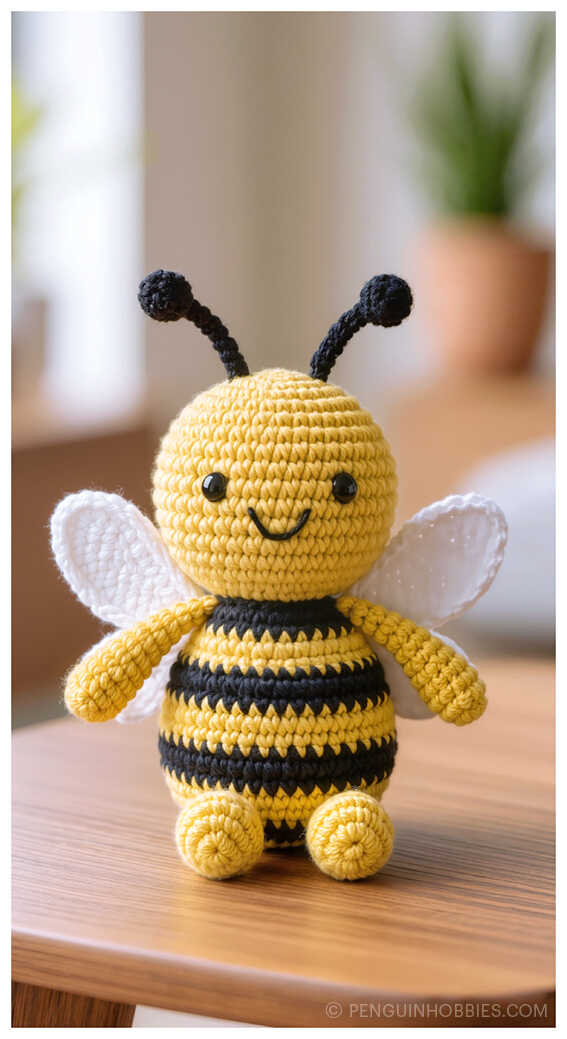Thank you to Susan’s Crochet Atelier for sharing this delightful free design that’s as fun to make as it is to admire. Follow the detailed pattern below to create your own plush little bee, and don’t forget to check out the collection of wonderful amigurumi bee ideas at the end of this tutorial for even more crochet inspiration. Buzz into creativity and enjoy every stitch!