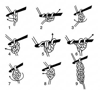 6. Pull up a loop as shown in the diagram and work the second sc.