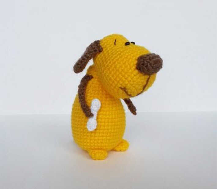 The arms and tail of the dog are crocheted as a narrow cord.