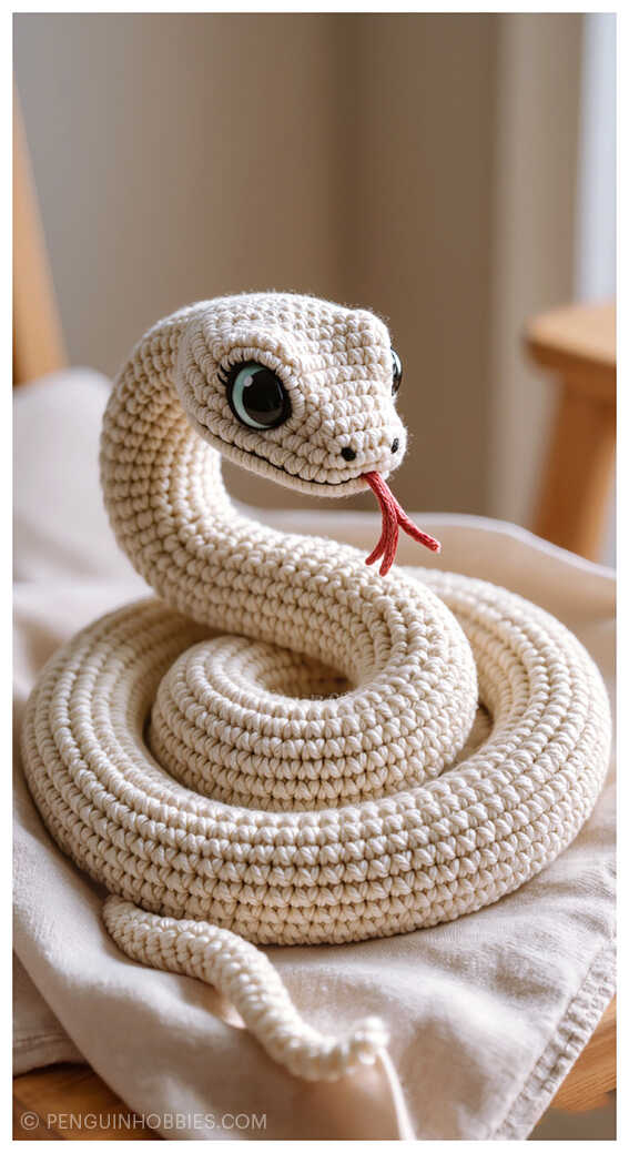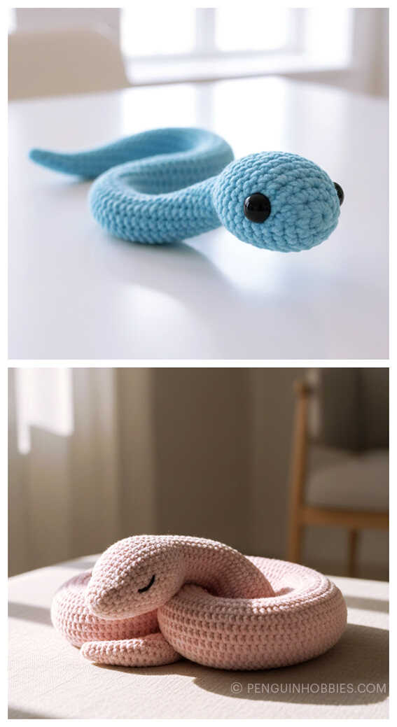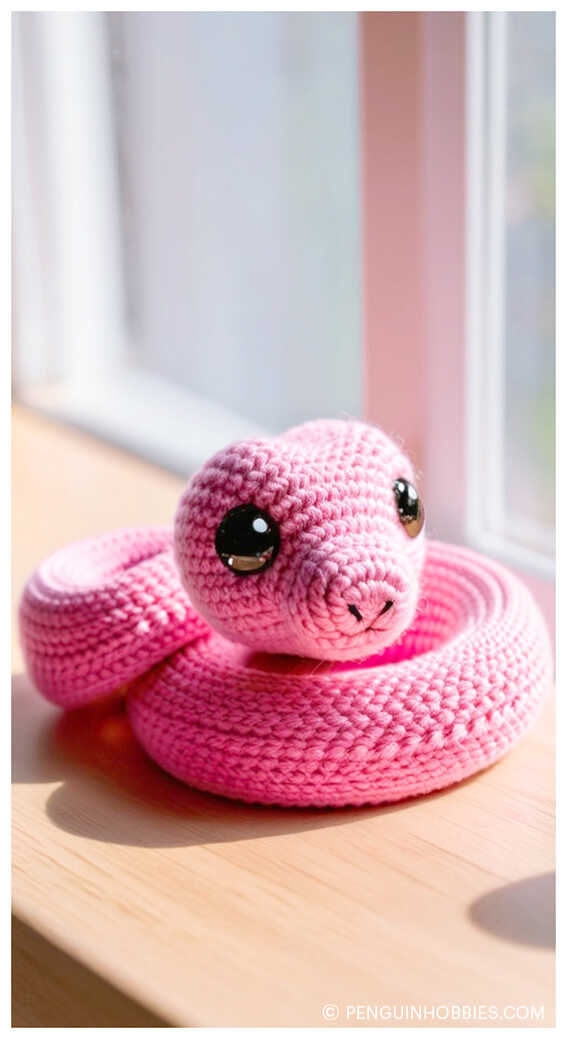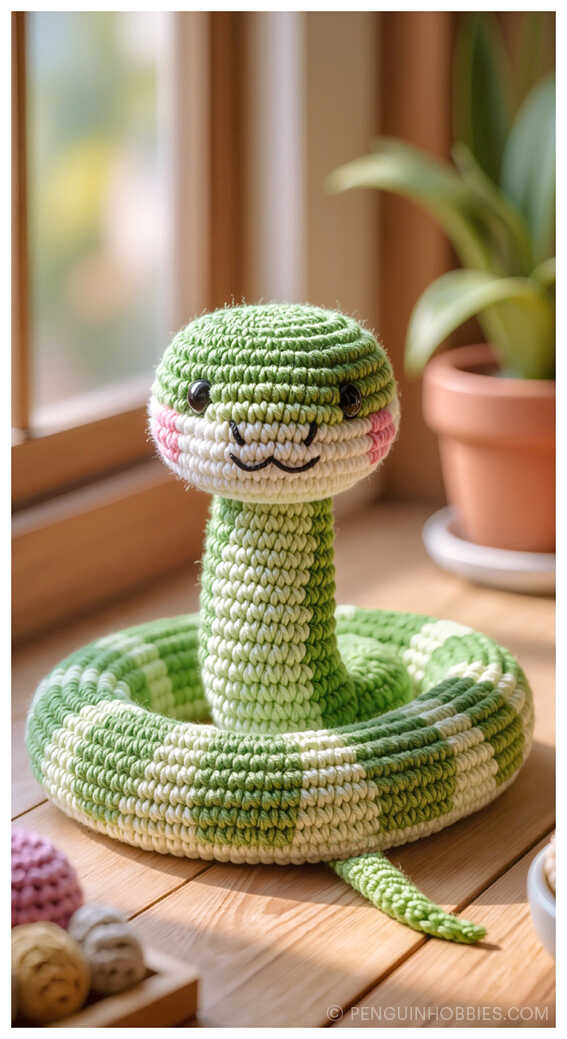 Carefully designed by Irina Kuznetsova, this pattern offers an easy-to-follow guide that ensures a fun and relaxing crochet experience. With basic tools such as a 3.5 mm crochet hook, safety eyes, fiberfill stuffing, and a thick needle for assembly and embroidery, you’ll bring your cute snakes to life with ease. A special thanks to Irina for sharing this creative free design — and don’t forget to explore the wonderful amigurumi snake ideas featured at the end of the tutorial for even more inspiration!